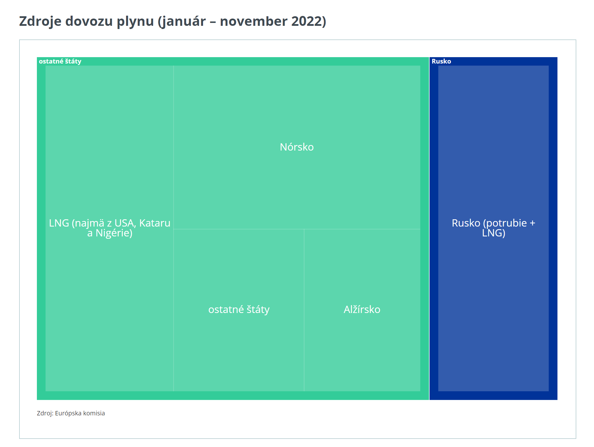 Najväčší dovozca plynu do Európskej únie je v súčasnosti Nórsko, s približne 25 % podielom. Nasleduje LNG z Kataru, USA a Nigérie.