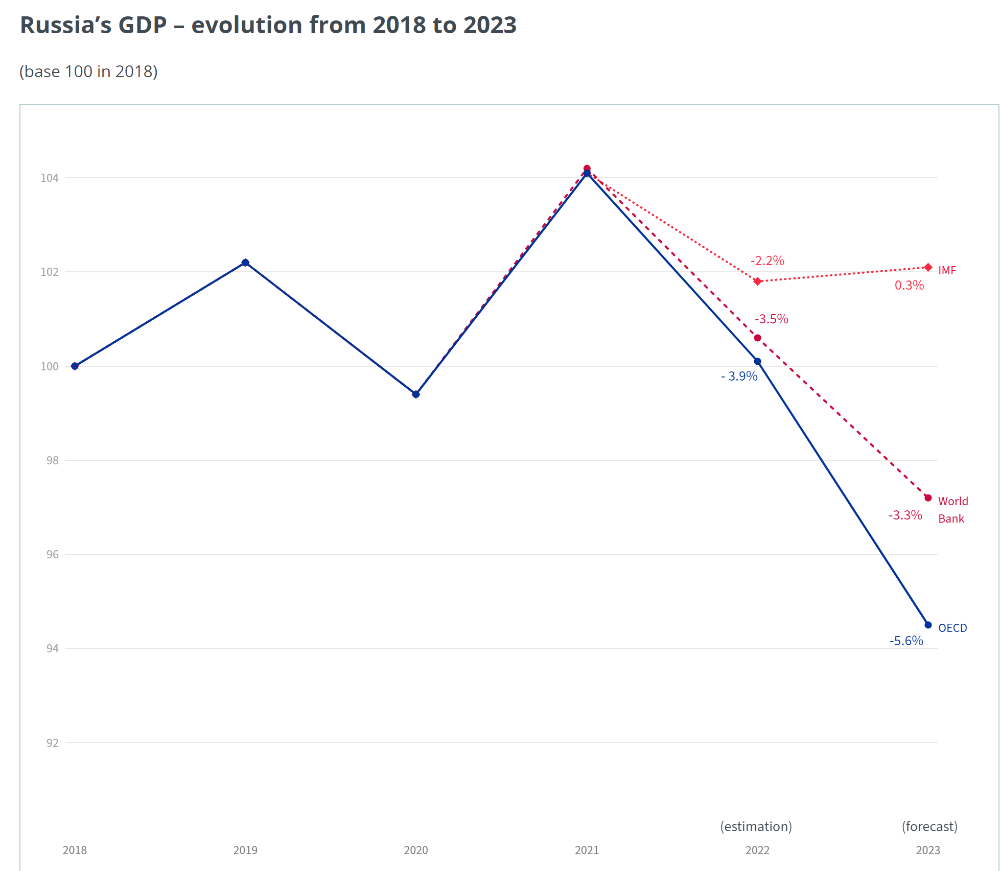 V dôsledku vzájomných sankcií, dovoz a vývoz medzi svetom a Ruskom výrazne poklesol. Podľa webu ceskenoviny.cz, vojna na Ukrajine minulý rok znížila výkon nemeckej ekonomiky o 100 miliárd eur. Nemecko sa môže dostať do technickej recesie. Utrpel aj dodávateľských reťazec z Ruska.