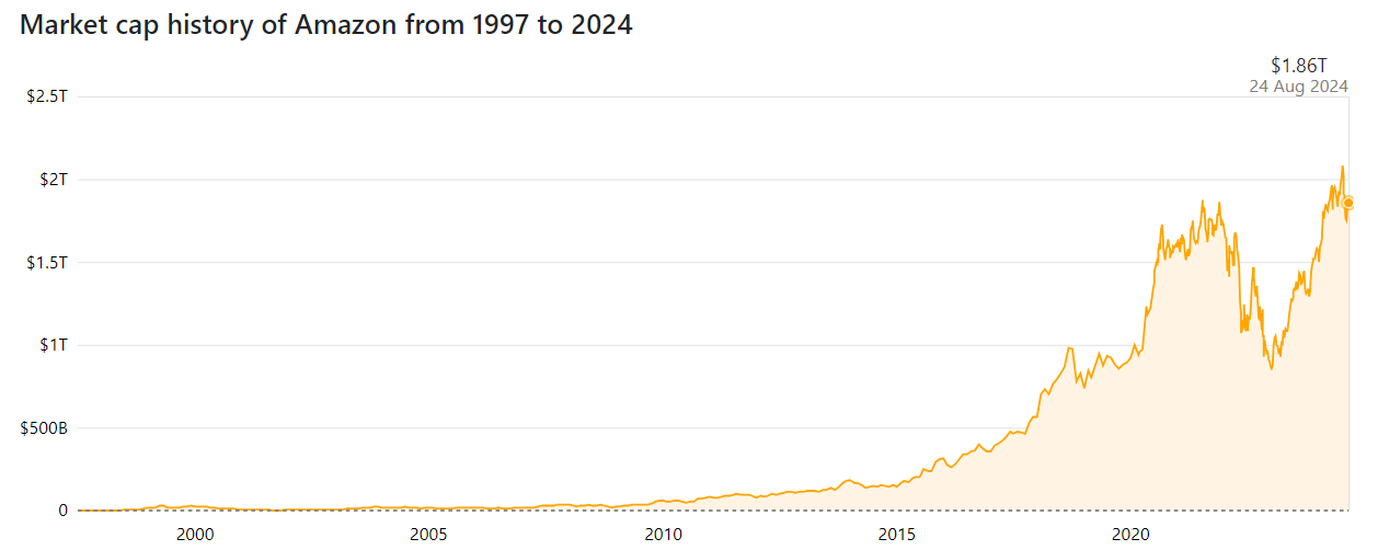 Amazon si vybudoval masívnu kapitalizáciu na trhu prostredníctvom svojej komplexnej platformy elektronického obchodu a cloudových služieb, ako je AWS. Digitalizácia je jeden z hlavných dôvodov rastu spoločnosti.