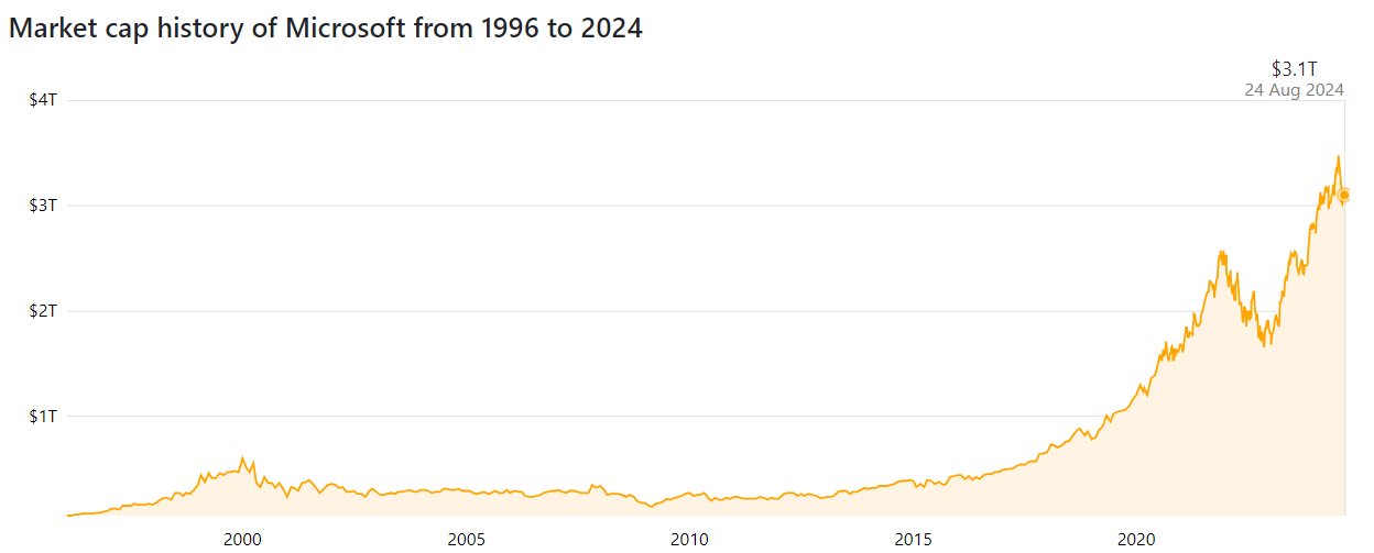 Microsoft nasleduje tesne za Apple s trhovou kapitalizáciou 3,098 bilióna dolárov. Pod vedením generálneho riaditeľa Satya Nadella sa Microsoft znovu zameral na cloudové služby, najmä Azure. Toto strategické preskupenie pomohlo spoločnosti Microsoft udržať si silnú pozíciu na trhu a neustále rásť.