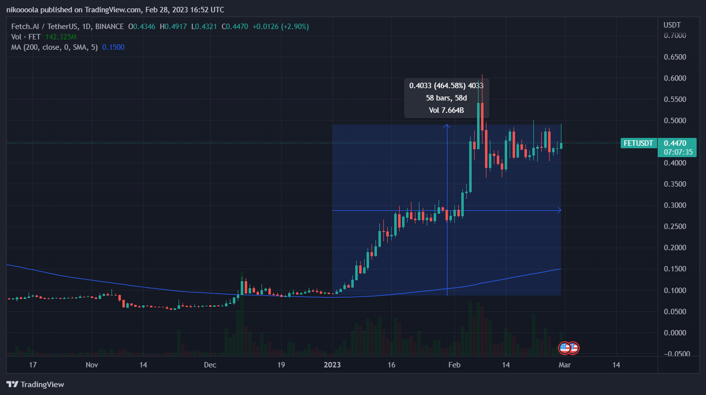 Projekt Fetch.ai sme podrobne rozoberali v nedávnom článku. Jeho cena v poslednom období raketovo stúpa. Od začiatku roka 2023 vzrástol takmer o 500 %.