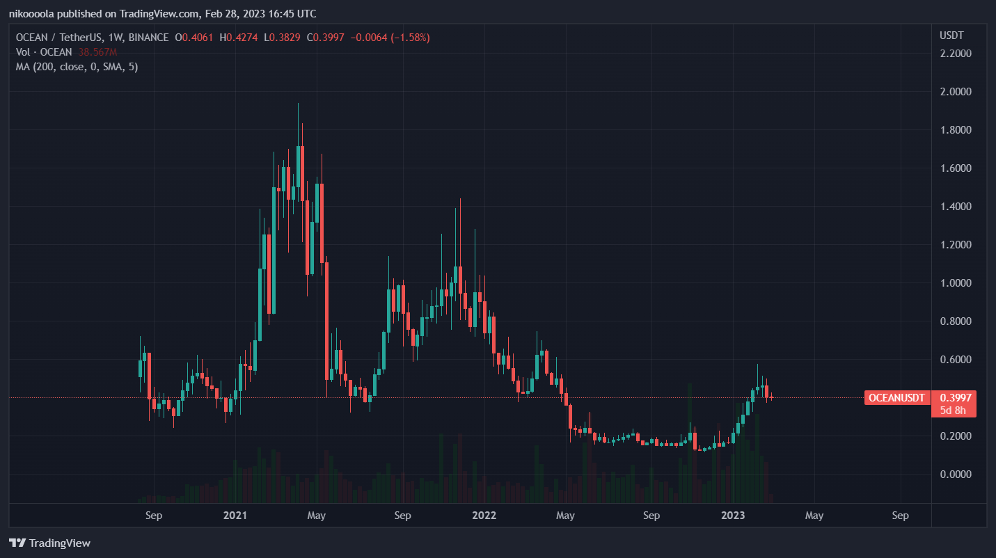 Oasis Network sa zaoberá ochranou osobných údajov v prostredí web3. Dnes má jedinečnú pozíciu na to, aby poskytol riešenia v oblasti ochrany osobných údajov pre nástroje umelej inteligencie. Na týždennom grafe tokenu OCEAN si môžeme všimnúť investičnú príležitosť, ktorá sa ponúka vzhľadom na to, ako je jeho aktuálna cena vzdialená od najvyššej historickej hodnoty.