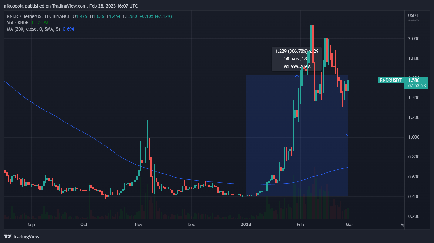 Render Token je projekt, ktorý je zameraný na uľahčenie 3D vykresľovania prostredníctvom blockchainu. Tvorcom obsahu ponúka bezpečný prístup k výkonnej výpočtovej technike, potrebnej na zložité úlohy vykresľovania. Implementácia umelej inteligencie do 3D vykresľovania, by mohla v tomto odvetví spôsobiť revolúciu. Práve to je motiváciou mnohých investorov, ktorí cenu tokenu RNDR vypumpovali od začiatku roka 2023 o obdivuhodných 300 % vyššie.
