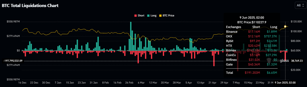 Za týmto rastom stojí kombinácia faktorov: od silnej obchodnej aktivity cez pozitívne on-chain signály až po zlepšujúce sa makroekonomické prostredie. Podľa dát z Coinglass bolo za deň zlikvidovaných takmer 197 miliónov dolárov v bitcoinových pozíciách, z čoho až 191 miliónov tvorili shorty. To poukazuje na výrazný nákupný tlak.
