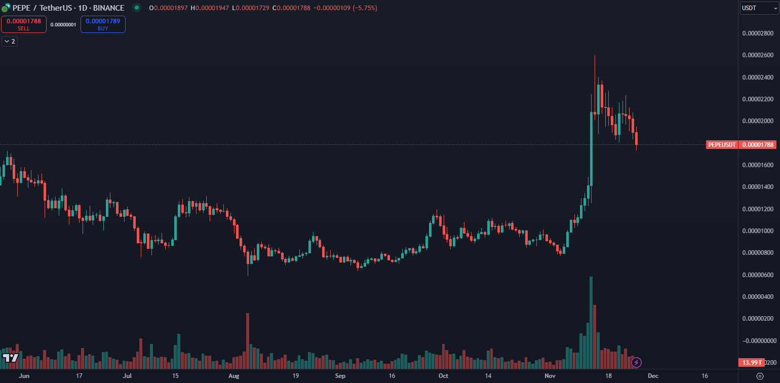 PEPE, ktorý je kreatívne inšpirovaný populárnym internetovým mémom Pepe the Frog, dosiahol pozoruhodný míľnik v polovici roku 2023, keď jeho trhová kapitalizácia vystúpila na 1,6 miliardy dolárov. Token funguje na spoľahlivej Ethereum sieti a využíva sofistikovaný mechanizmus deflačného modelu na strategické zvýšenie vzácnosti meny.