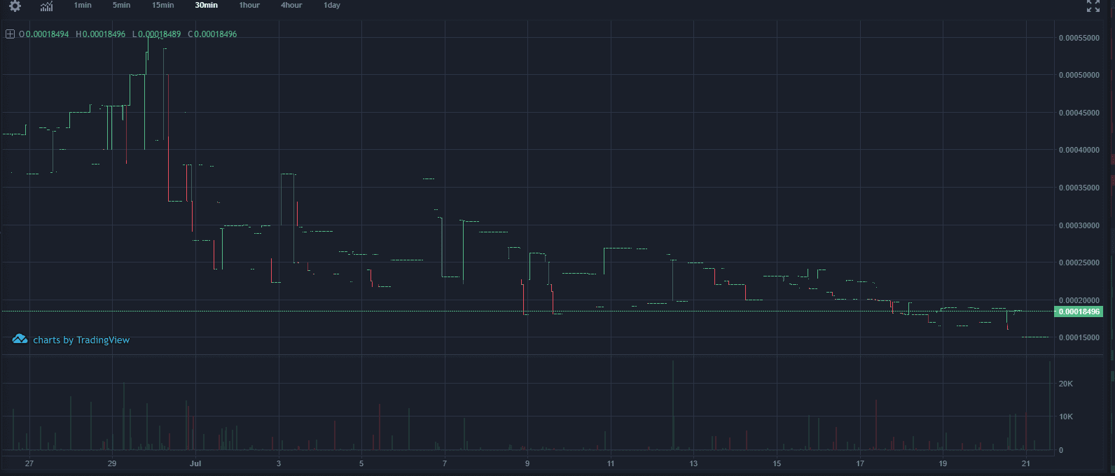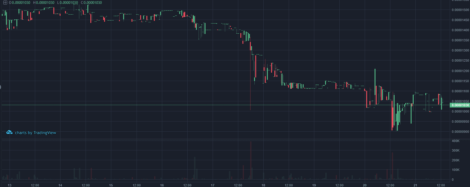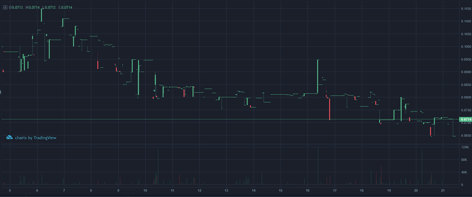 Táto burza má podobný príbeh. Dnešné volume mierne presiahlo 20 000 $ a grafy vyzerajú údesne.