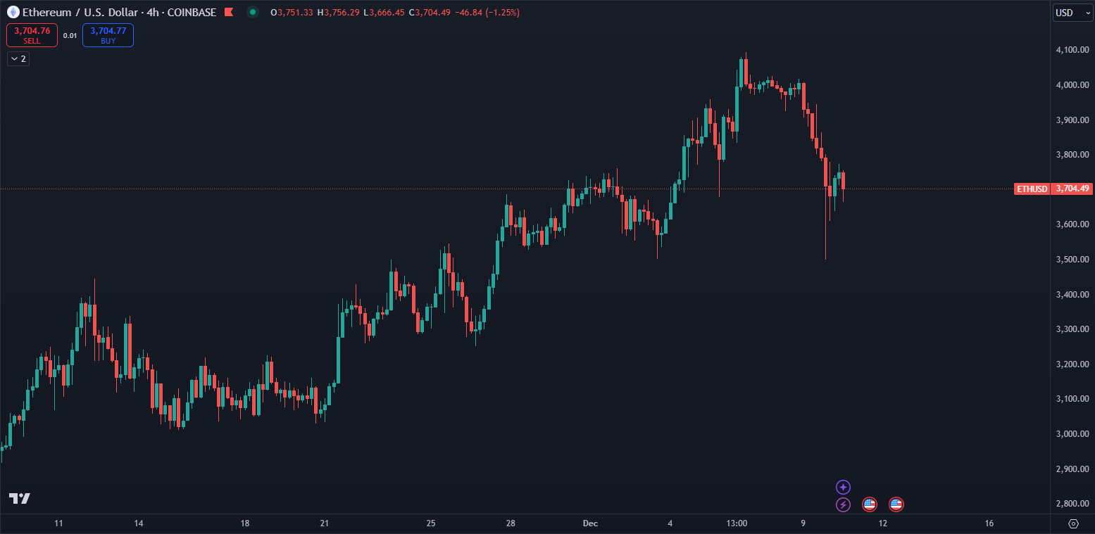 Ethereum sformovalo vrchol. Zdroj: TradingView