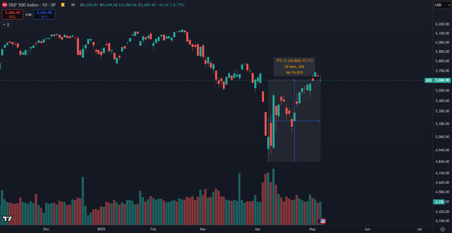 Index S&P 500 pokračuje v silnom raste a od svojho minima zo 7. apríla posilnil už o 16 %, čo naznačuje obnovenú dôveru investorov. Technologický index Nasdaq za rovnaké obdobie zaznamenal ešte výraznejší nárast – až 20 %, pričom ťaží z rastúceho optimizmu v sektore technológií a možného uvoľnenia obchodných napätí.