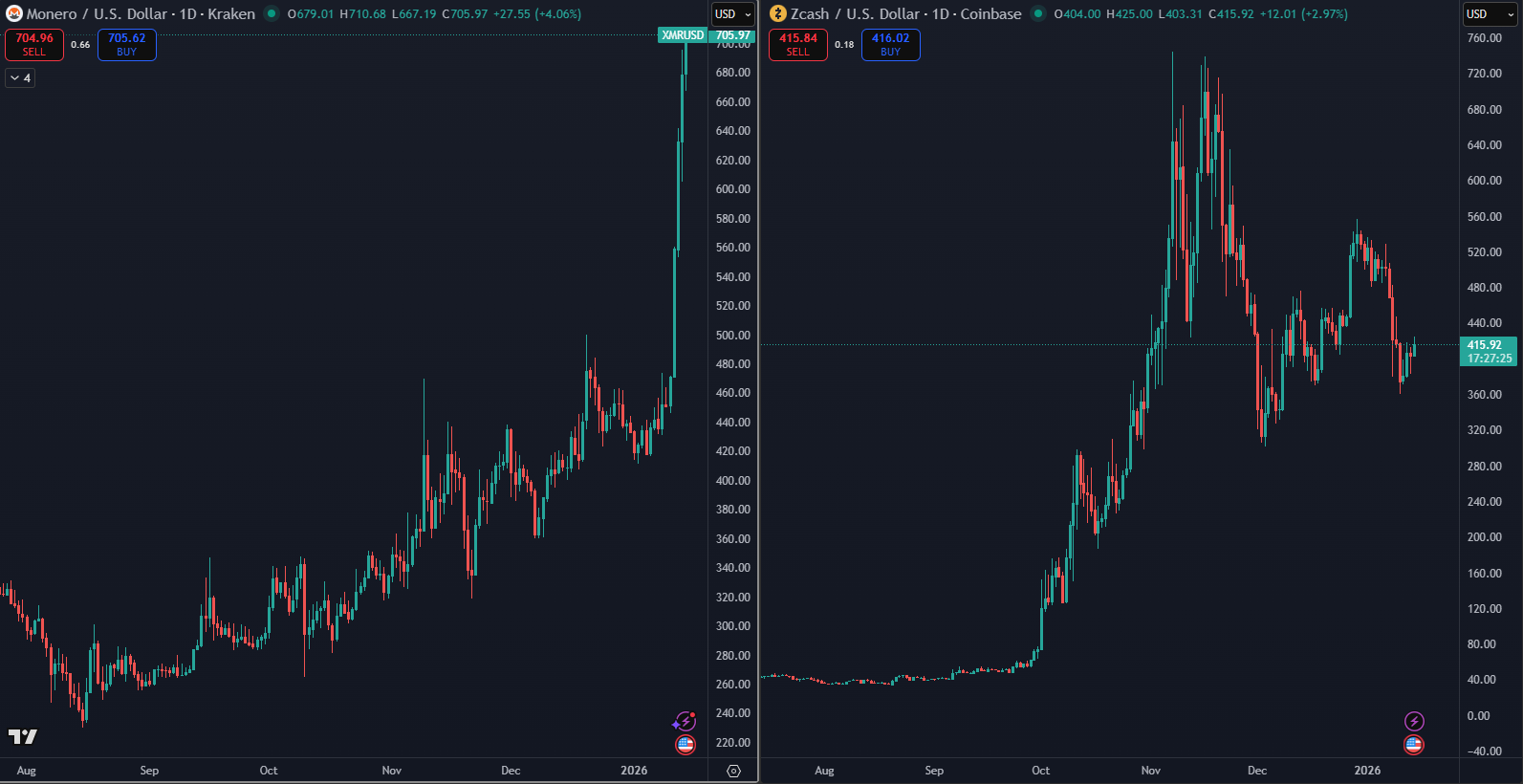 Zákaz prichádza v čase, keď mince na súkromie zaznamenali výrazný rast. V roku 2025 Zcash dosiahol zhodnotenie približne 700 % a Monero ukončilo rok so ziskom presahujúcim 100 % a aktuálne prekonalo historický vrchol 700 dolárov, ukazujú údaje z TradingView. Investori reagovali na rastúce sledovanie blockchainov a sprísňovanie regulácií presunom kapitálu do aktív orientovaných na súkromie. Napriek tomuto trendu Dubaj zvolil opačný smer.
