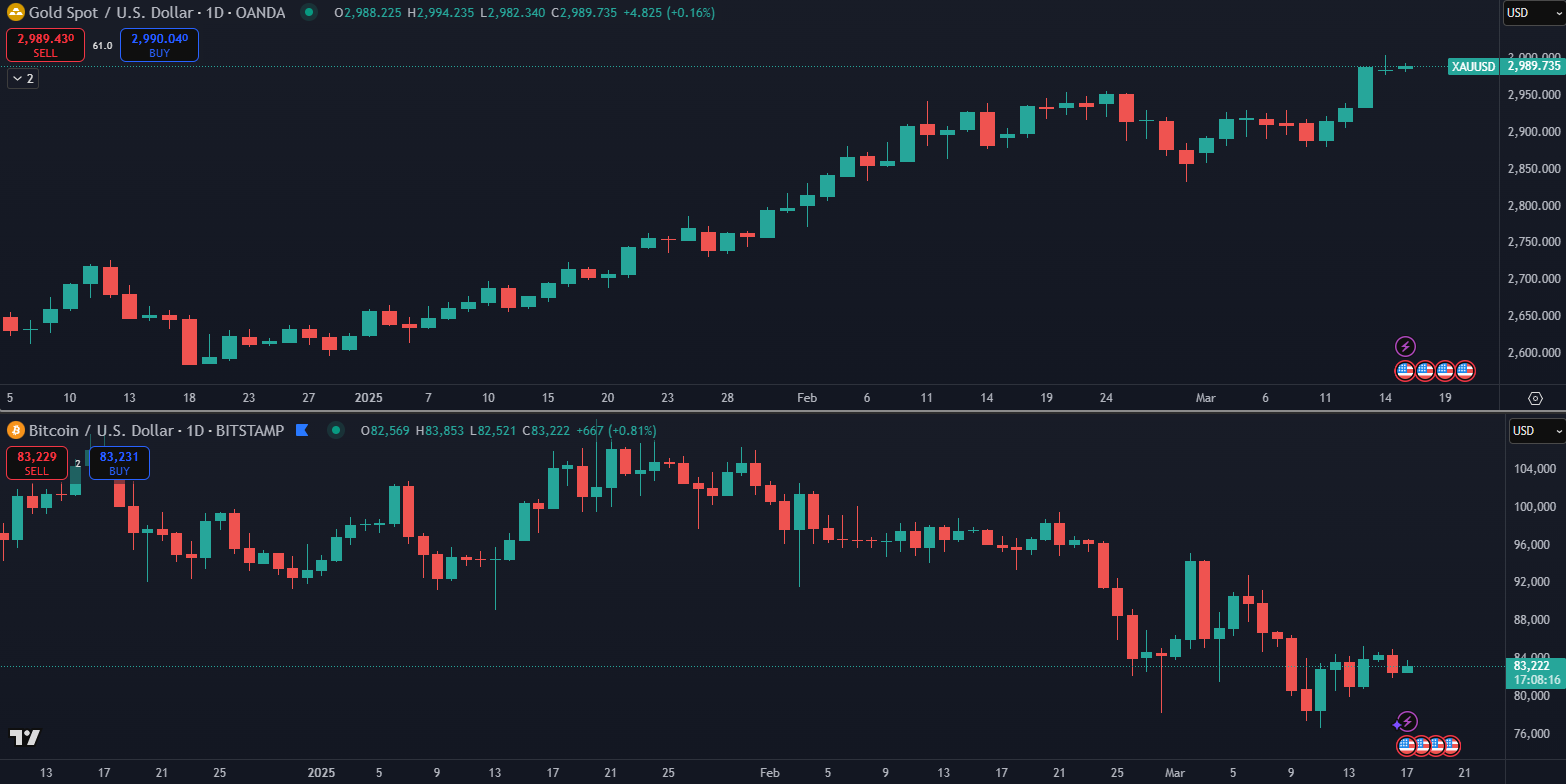 Bitcoin Back to $10,000? Peak Leveraged Beta Risks, Rising Gold – #Gold is up about the same amount in 2025 to March 13 — about 15% — that #Bitcoin is down. But with Bitcoin at about $80,000, what stops those trajectories? About a 6% decline in the S&P 500 could suggest what… pic.twitter.com/aMgL0LANFt