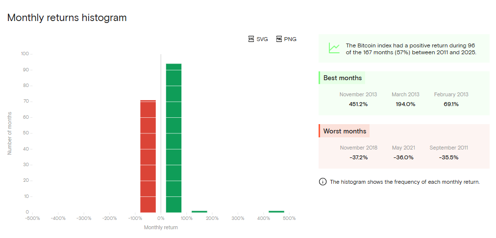 Najvolatilnejšie mesiace, ktoré Bitcoin priniesol. Zdroj: curvo.eu