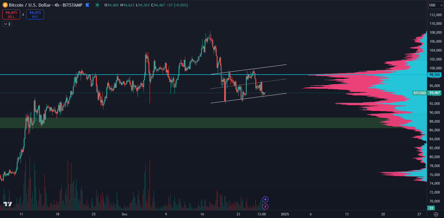 Bitcoin sa podľa údajov TradingView obchoduje na cene 94 400 dolárov. Na základe CoinMarketCap je trhová kapitalizácia BTC na úrovni 1,86 bilióna dolárov, pričom denný objem obchodovania z toho predstavuje 47,06 miliardy dolárov (2,53 %).