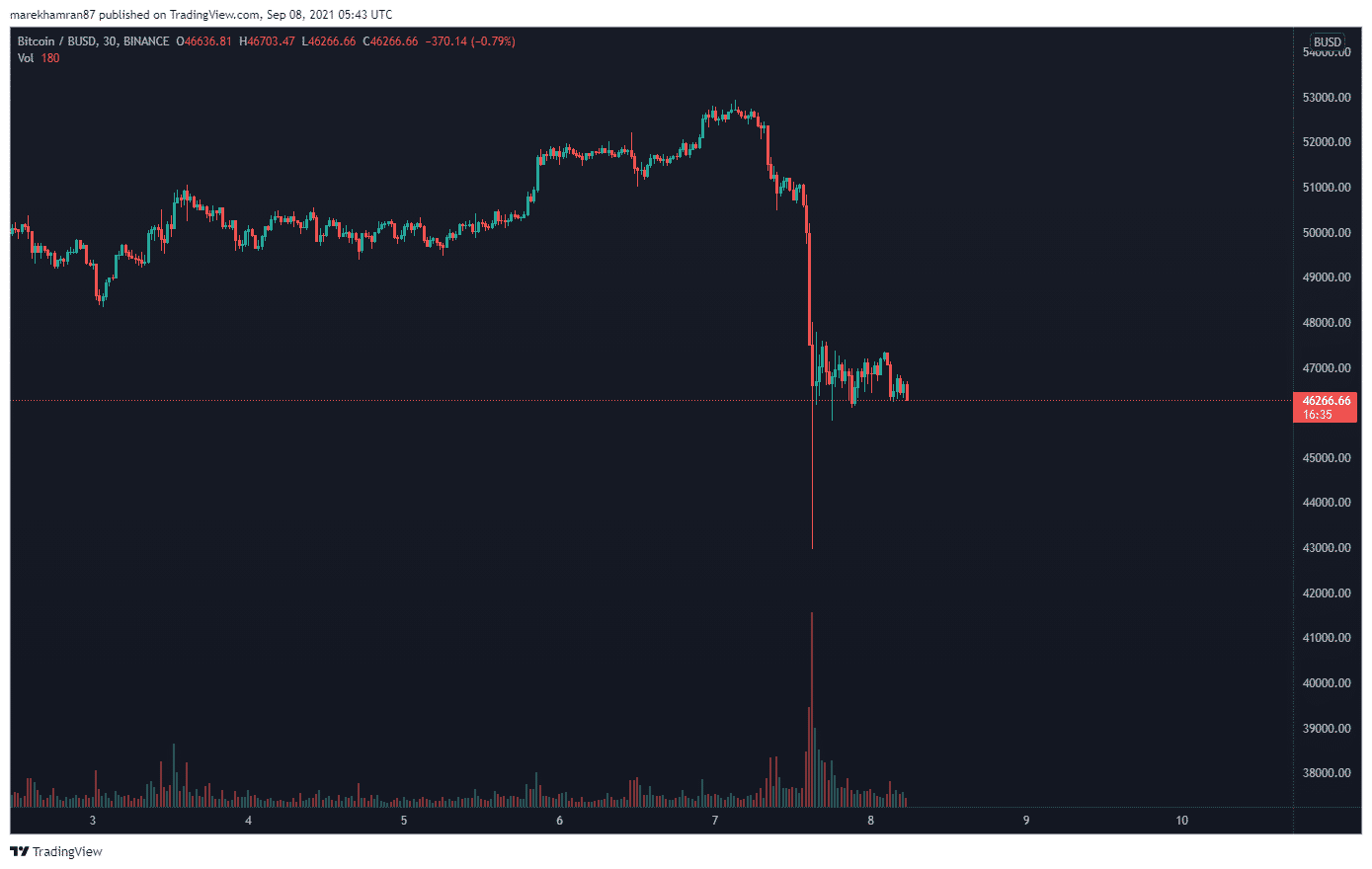 Čo, alebo kto konkrétne spôsobil tento prepad je diskutabilné. Viacero traderov a analytikov sa domnieva, že sme sa jednoducho dostali do pozície, keď veľryby uzatvárali longy. Niektorí sa domnievajú, že pokles spôsobilo oficiálne spustenie BTC v Salvádore.