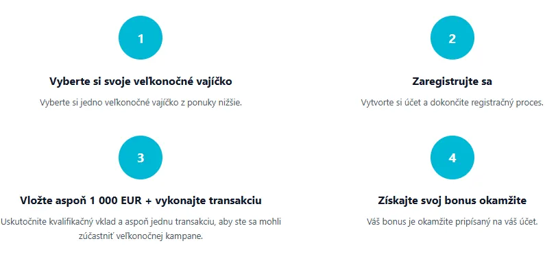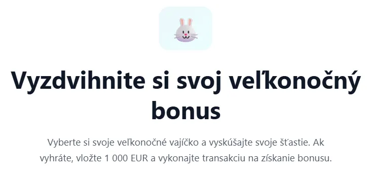 Interaktívna kampaň s názvom „Vyzdvihnite si svoj veľkonočný bonus” prináša do sveta investícií prvok prekvapenia. Celý proces začína jednoduchým výberom virtuálneho vajíčka. Používateľ okamžite zistí, či jeho vajíčko obsahuje náhodne vygenerovanú odmenu.