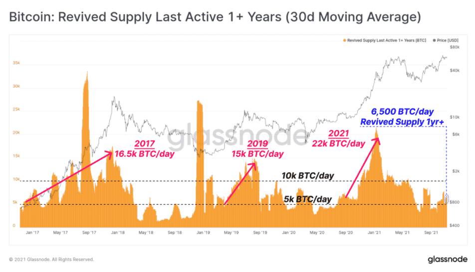 V správe sa uvádza, že zvýšená akumulácia bitcoinov od dlhodobých držiteľov slúžila ako býčí signál aj pri prerazení aprílového historického maxima. Podiel ponuky bitcoinov zastúpený dlhodobými držiteľmi dosiahol v auguste 2020 maximum 80,6 %. Od cenového bodu 66 000 $ minuli LTH 0,73 % ponuky BTC, čím sa množstvo zásob, ktoré držali, znížilo na približne 68 %.