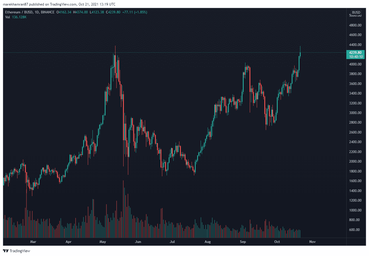 Od posledného momentu, čo sa ETH dokázalo vyšplhať na ATH, ubehlo už takmer pol roka. Odvtedy sa ETH v podstate viezlo na podobnej vlne ako BTC. Dnes je však situácia iná a najväčší analytici odhadujú, že sa čoskoro dostaneme až na 7 000 USD.