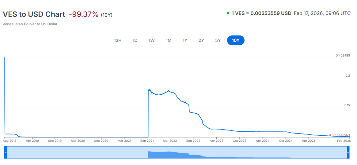 Za Madura sa problémy naďalej prehlbovali. Od straty dôvery v menu a monetizácie dlhu, cez opakované menové reformy, až po bizarný experiment s kryptomenou Petro „podloženou ropou”. K tomu sa pridali sankcie, zhoršujúce sa zahraničné vzťahy a rastúca kriminalita a emigrácia, v dôsledku čoho krajinu opustili milióny ľudí.