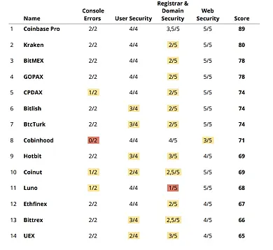 Zo 100 skúmaných obchodných platforiem, ktoré spoločnosť ICORating monitorovala a hodnotila, vyplýva, že väčšina z nich má vážne bezpečnostné chyby už v počiatočnom procese zakladania účtu. Jedným z bezpečnostných rizík, na ktoré správa upozorňuje, je fakt, že niektoré burzy umožňujú svojim klientom zvoliť si príliš krátke heslá (menej ako osem znakov), prípadne nevyžadujú nealfanumerický znak. Ďalším oslabením celkovej bezpečnosti je napríklad aj povolenie založiť si klientsky účet bez akejkoľvek dodatočnej emailovej autentifikácie, či nemožnosť dvojfaktorovej autorizácie.