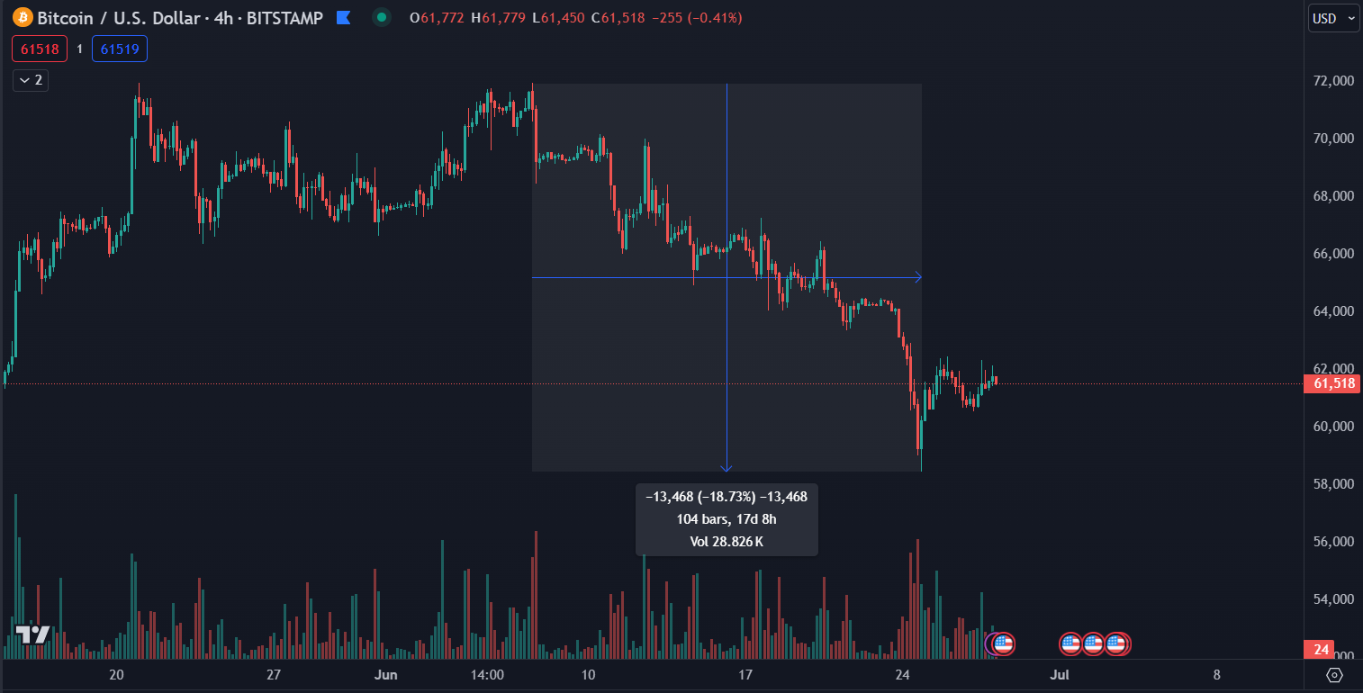 Avšak, v skutočnosti je dôležitá informácia, kedy začne toto vyplácanie. Cenu Bitcoinu nemohli spôsobiť predaje držieb veriteľov, pretože k vyplácaniu dôjde až v júli. Počet Bitcoinov smerujúcich k bývalým zákazníkom stále nie je istý a mohol by sa pohybovať od 65 000 do 140 000 BTC.