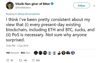 Vitalik vo svojej reakcii prekvapivo súhlasil s pesimistickým scenárom Rubina a označil ho za úplne možný, ale za predpokladu, že sieť Ethereum zostane taká, aká je dnes, pričom trh sa bude naďalej vyvíjať. Narážal tým na už pomerne dlhú dobu diskutovaný prechod Etherea z algoritmu Proof of Work na Proof of Stake.