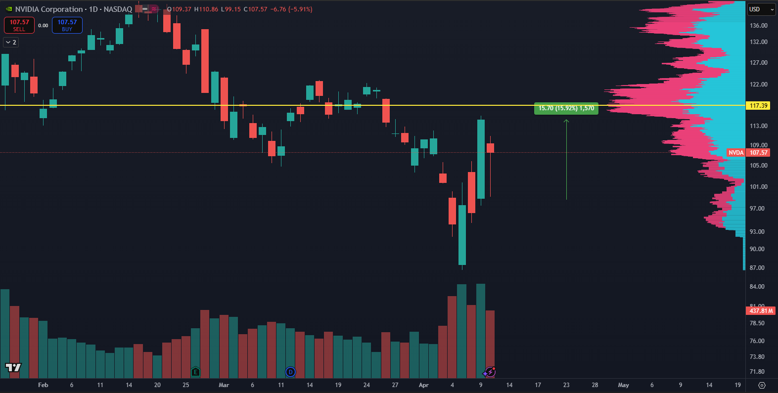 Akcie Nvidia a ich výnos. Zdroj: tradingview.com