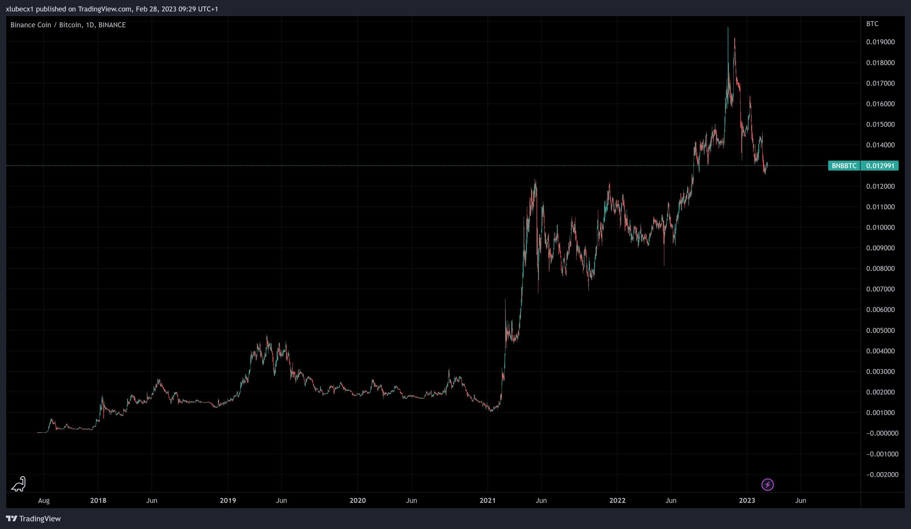 Binance coin oproti bitcoinu rastie. Zdroj: tradingview.com