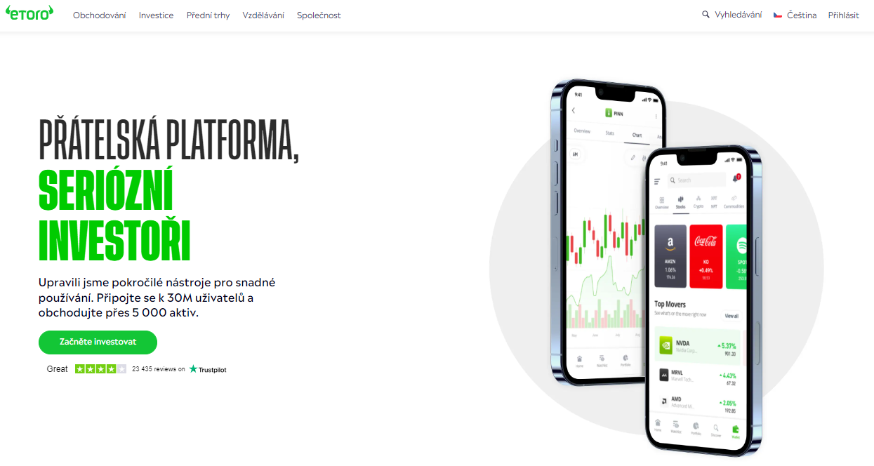 Broker eToro je jeden z najpopulárnejších brokerov na Slovensku. Obchodovanie akcií a ETF je bezplatné. Rovnako tu môžete obchodovať frakčné akcie, kryptomeny, CFD, komodity a forex. Poplatok za vklad a správu nie je žiadny, no za výber si platforma účtuje 5 dolárov. Podporovaný je americký dolár, platforma však disponuje menším množstvom investičných produktov ako XTB.