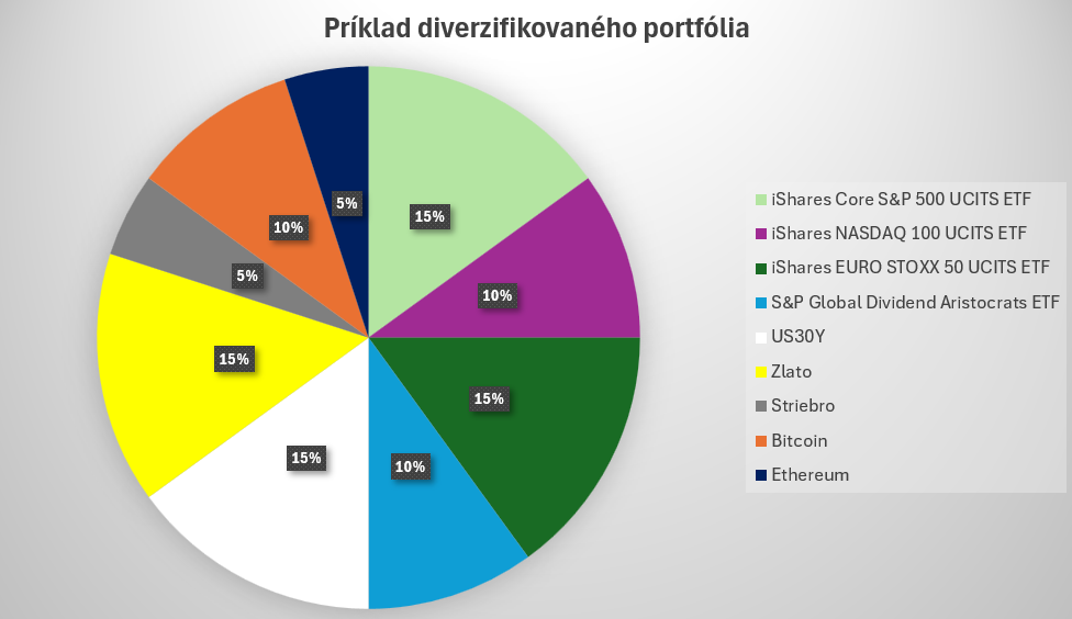 Pri tvorbe vzorového investičného portfólia sme sa zamerali na rovnováhu medzi stabilitou, rastom a inováciou. Cieľom je ukázať, ako môže aj bežný investor vytvoriť rozumnú štruktúru aktív, ktorá obstojí v rôznych trhových podmienkach. Naše modelové portfólio zahŕňa kombináciu akcií, dlhopisov, drahých kovov a kryptomien. Teda tradičných aj moderných investičných nástrojov.