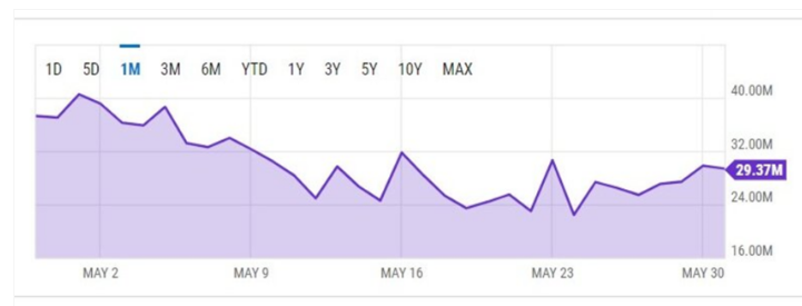 Jednodňové maximum za máj 2022 bolo 11 % pod najlepším denným maximom v apríli. Podľa údajov z YCharts bolo jednodňové maximum za apríl 46,01 milióna dolárov. Májové maximum za jeden deň bolo v oblasti 40,53 milióna dolárov, čo bolo o 32 % menej ako najlepšie denné maximum 60,16 milióna dolárov v januári 2022.