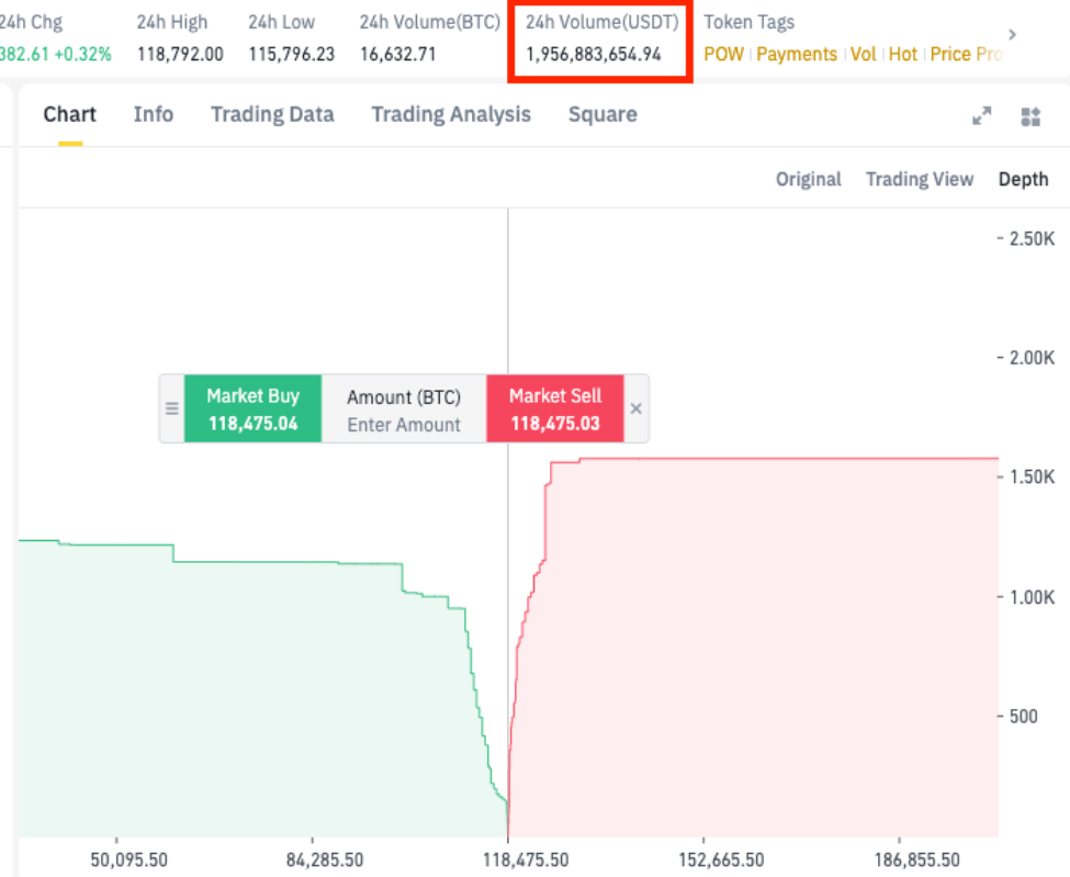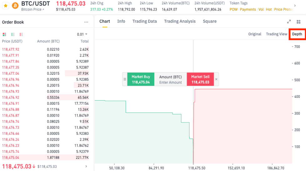 Hĺbkový graf. Zdroj: binance.com
