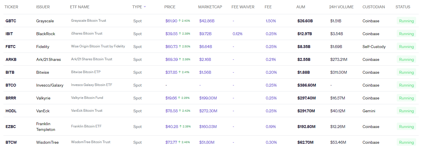 Bitcoinové spotové ETF. Zdroj: Blockworks