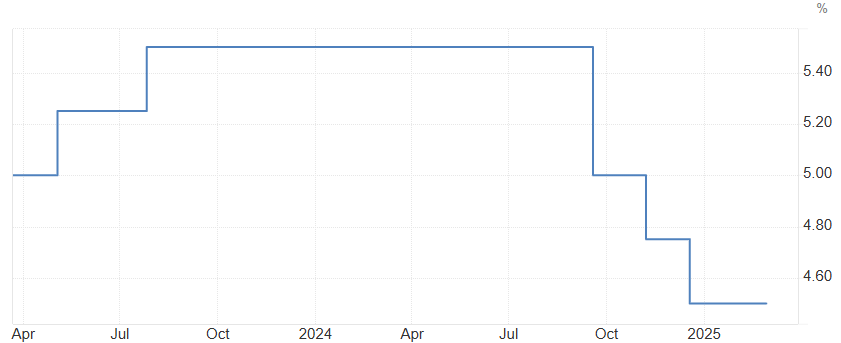 Pokles úrokovej sadzby v USA. Zdroj: tradingeconomics.com