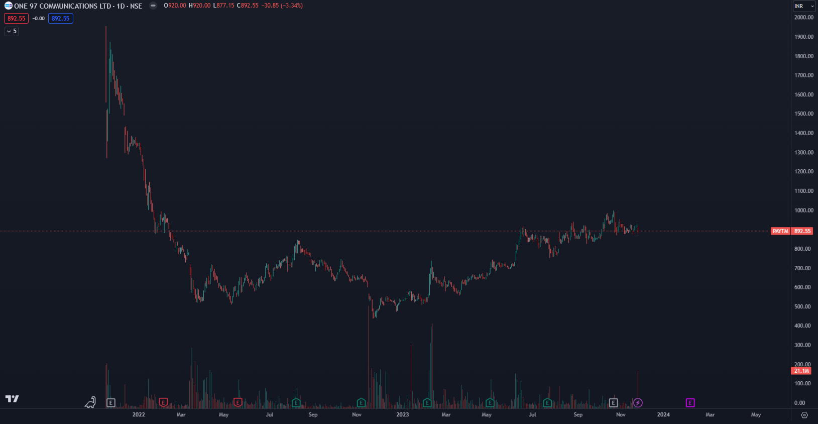 Podľa údajov TradingView sa akcie PAYTM obchodujú v čase písania článku na hodnote 892,55 indických rupií (10,70 dolárov). V posledných štvrťrokoch sa výkonnosť zlepšila a sám generálny riaditeľ spoločnosti Vijay Shekhar Sharma vyjadril záujem zvýšiť svoj podiel. Presne pred rokom bola cena na minime 438 indických rupií (5,25 dolárov), no odvtedy došlo k nárastu o viac ako 100 %. Avšak presne pred 2 rokmi jedna akcia dosahovala úroveň až 1 873 indických rupií (22,47 dolárov).