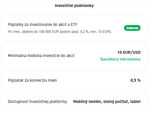 - Možnosti frakčných akcií umožňujú diverzifikáciu portfólia aj malým investorom.