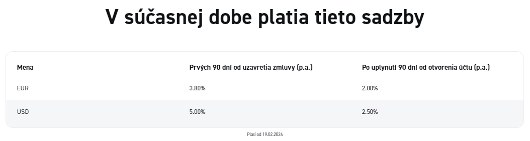 V tabuľke vyššie môžete vidieť dve rôzne sadzby. Jedna platí pre investorov, ktorí uzatvorili prvú zmluvu v posledných 90 dňoch. Druhá sa týka všetkých klientov, ktorí majú u XTB účet dlhšie ako 90 dní. Samozrejme toto sú sadzby, ktoré platia v čase písania recenzie. Ak sa zaujímate o historické sadzby, odporúčame sa pozrieť na tento odkaz. Naopak, aktuálne sadzby nájdete vždy tu.