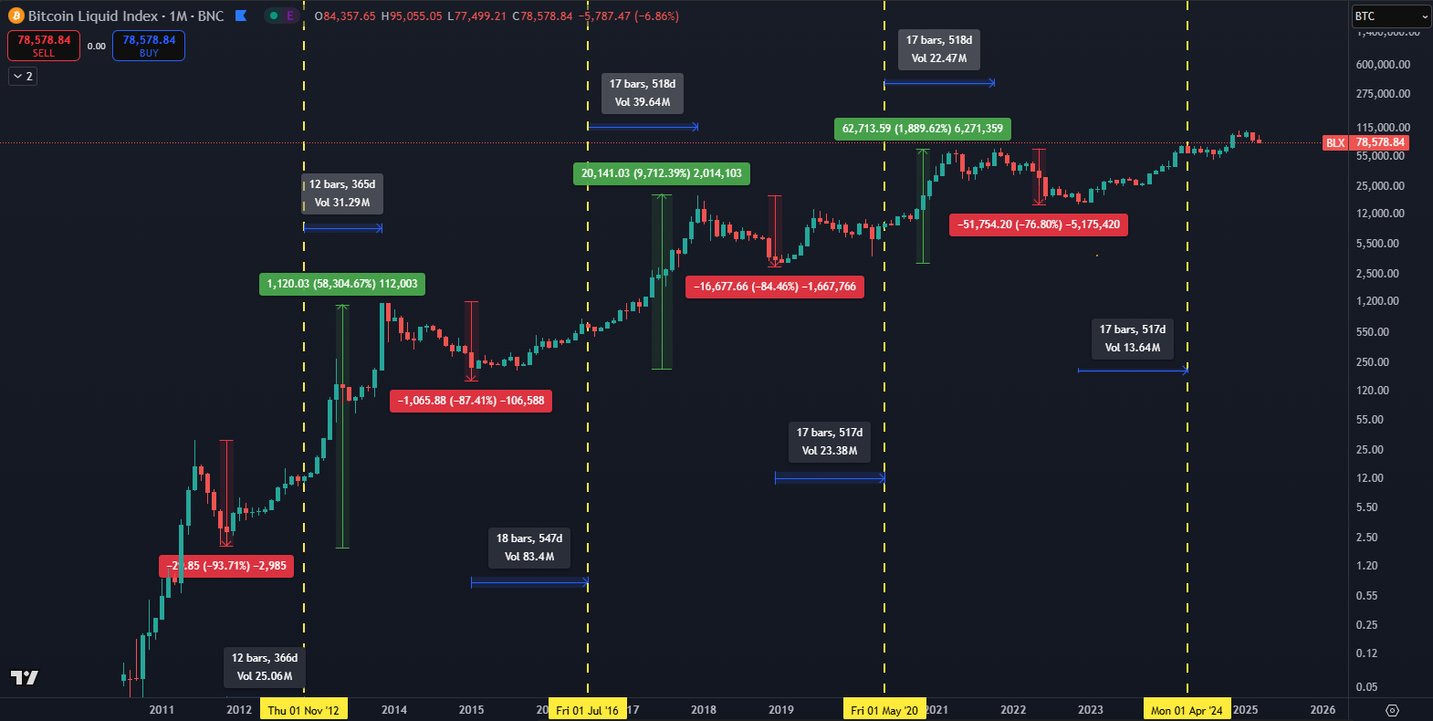 Aj keď krátkodobé výkyvy môžu byť nepríjemné, z historického pohľadu je 30 % korekcia bežnou súčasťou rastového cyklu. Súčasný trh preto stále ponúka priestor na ďalší vývoj smerom nahor. Odhaduje sa, že vrchol by mohol byť dosiahnutý na jeseň 2025.