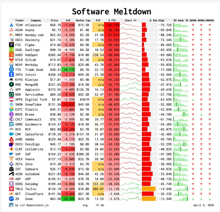 Práve tu sa láme investičný pohľad na celý sektor. Ak má trh pravdu a umelá inteligencia skutočne zníži hodnotu časti dnešného softvéru, potom je tohtoročný pokles logický. Ak však investori len krátkodobo preháňajú a podceňujú silu značky, distribúcie, dát, integrácie a vzťahov so zákazníkmi, môže byť súčasný výpredaj prehnaný. Navyše aj posledné dni ukázali, že stačí menšia zmena nálady a softvér dokáže veľmi rýchlo rásť. iShares Expanded Tech-Software Sector ETF v polovici apríla prudko posilnil a zažil najlepší deň za posledný rok, čo naznačuje, že časť trhu už začína hľadať dno. Zároveň však platí, že celý sektor je stále v širšom klesajúcom trende a investori budú chcieť od firiem počuť oveľa presvedčivejšiu odpoveď na to, ako chcú umelú inteligenciu nielen prežiť, ale aj zmonetizovať.