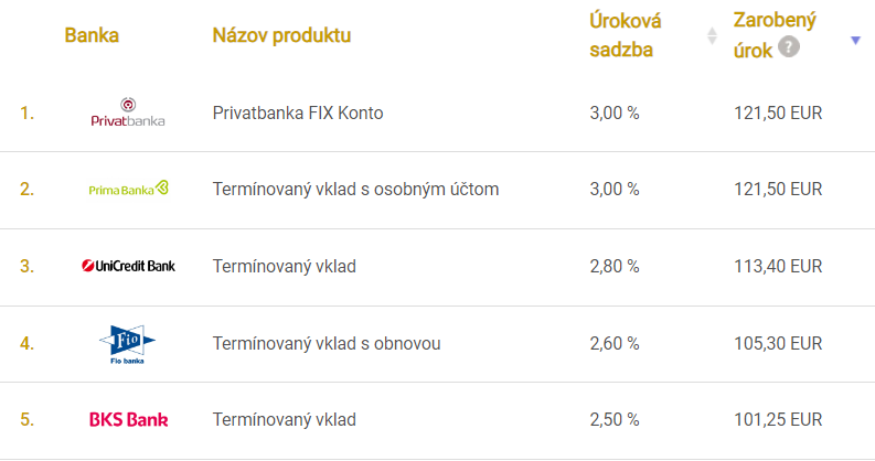 - Nízke úrokové sadzby – na základe údajov z portálu Finančný kompas komerčné banky na Slovensku v čase písania ponúkajú úrokovú sadzbu termínovaných vkladov od 1 % po 3%. Tieto úrokové sadzby sú z dlhodobého hľadiska veľmi nízke. A to sme navyše v období, kedy centrálne banky zásadne sadzby zvyšovali, čiže bežne sú ešte nižšie.