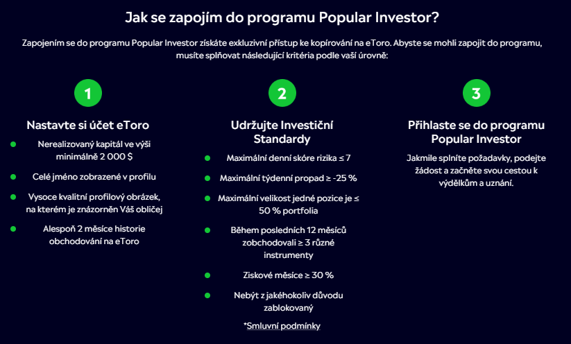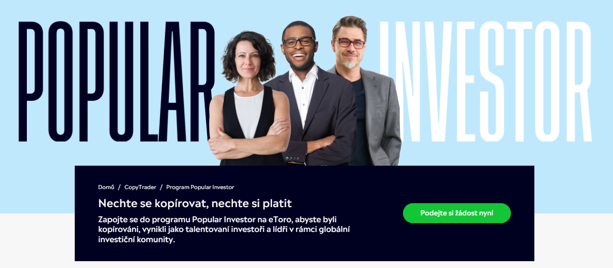 TIP eToro prevádzkuje program Popular Investor.