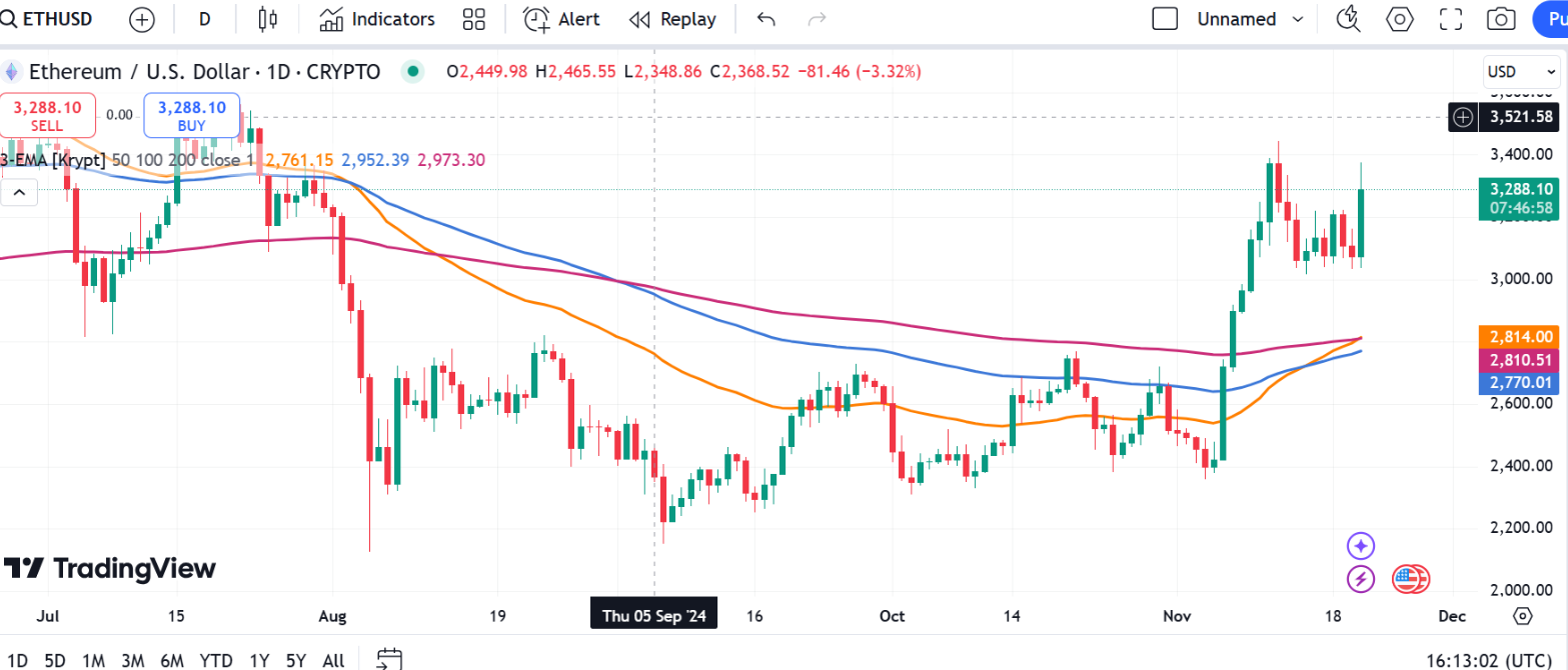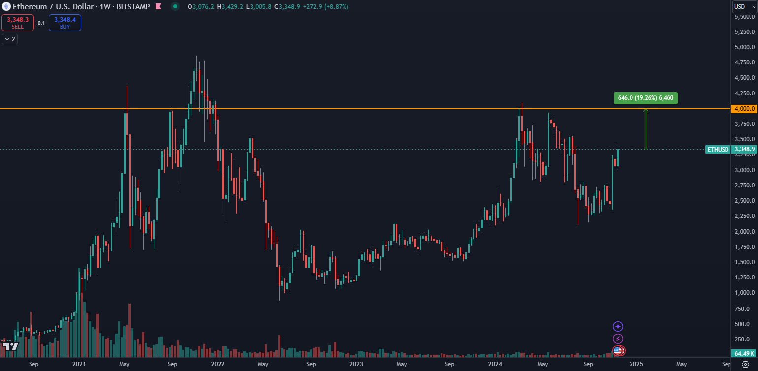 V čase písania článku sa Ethereum obchoduje na úrovni 3 348 dolárov, čo predstavuje pozoruhodný 7-percentný nárast za posledný deň. Rastúci počet analytikov predpovedá, že cesta k hranici 4 000 dolárov je reálna a dosiahnuteľná ešte v tomto roku.