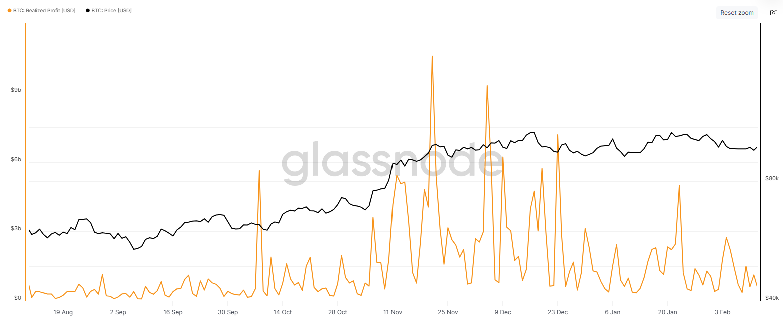 V decembri, keď sa Bitcoin blížil k 100 000 dolárom, denný realizovaný zisk dosiahol 10 miliárd dolárov. Tento ukazovateľ však v januári a februári klesol na 2 až 3 miliardy dolárov denne, ukazujú údaje z Glassnode. Pokles naznačuje, že predajný tlak sa momentálne znižuje, čo by mohlo podporiť stabilizáciu trhu.