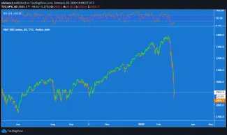 Vo veľmi podobnej bearish nálade je aj index S&P, alebo aj Standart and Poor. Taktiež od začiatku týždňa stratil veľkú časť svojej hodnoty(-15 %). V súčasnej dobe už hrozí vypuknutie globálnej krízy obrovských rozmerov. Pokiaľ by sa šírenie koronavírusu nepodarilo urýchlene zastaviť, môže to mať ešte väčší dopad na ekonomiku. Čínske firmy počítajú zo stratami v podobe 500 miliárd dolárov. Ak teda bude vírus postupovať a ľudia budú musieť naďalej zostať doma v najviac ohrozených miestach, môže trvať až 10 rokov, kým by sa tieto straty podarilo vymazať.