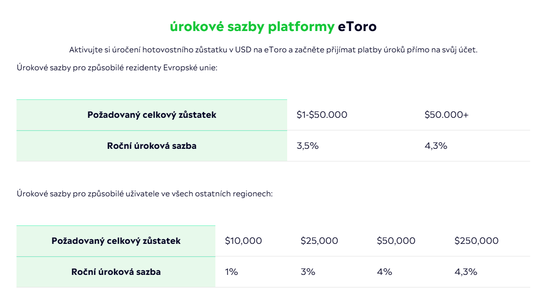 - Podmienky a výhody úročenia disponibilného zostatku na platforme eToro.