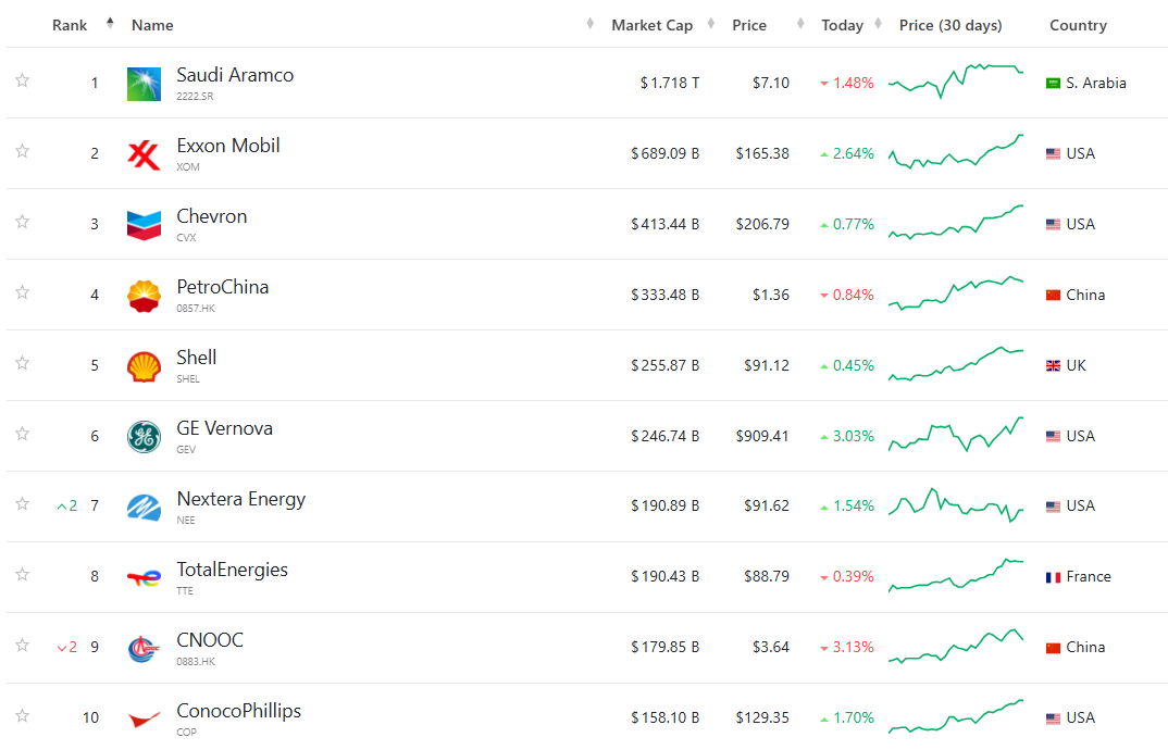 Top 10 najväčších energetických firiem sveta. Zdroj: companiesmarketcap.com