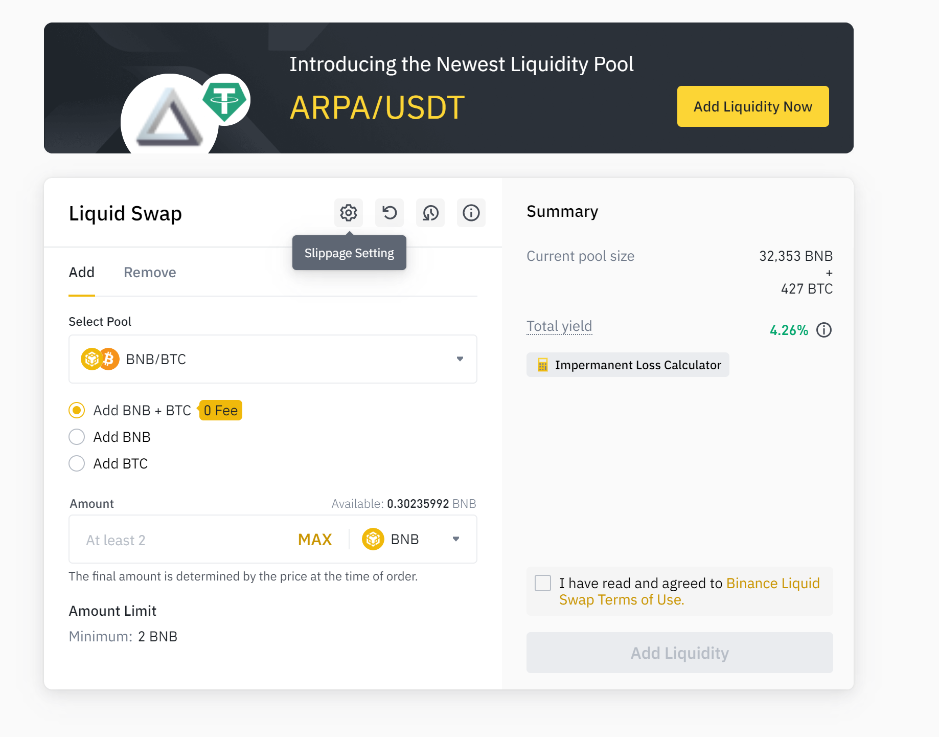 Menej stabilný spôsob zhodnocovania peňazí, kde sa výnos mení v závislosti od určitých faktorov. Zisk môže v niektorých prípadoch vyrásť na viac ako 100 % za rok ale na druhý deň spadnúť na 10 %. Dôležité je, že musíš mať kryptomeny z oboch párov, ktoré chceš zhodnocovať.