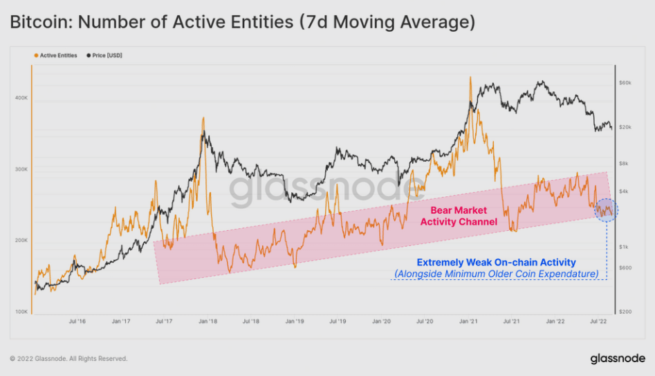 Aktivita v bitcoinovej sieti slabne, čo potvrdzuje ak on-chain metrika rozobratá v článku. Zdá sa, že dopyt po hlavnej kryptomene nie je dostatočný na to, aby zvrátil dlhotrvajúcu korekciu, ktorá sprevádza kryptomenový trh celý rok 2022.