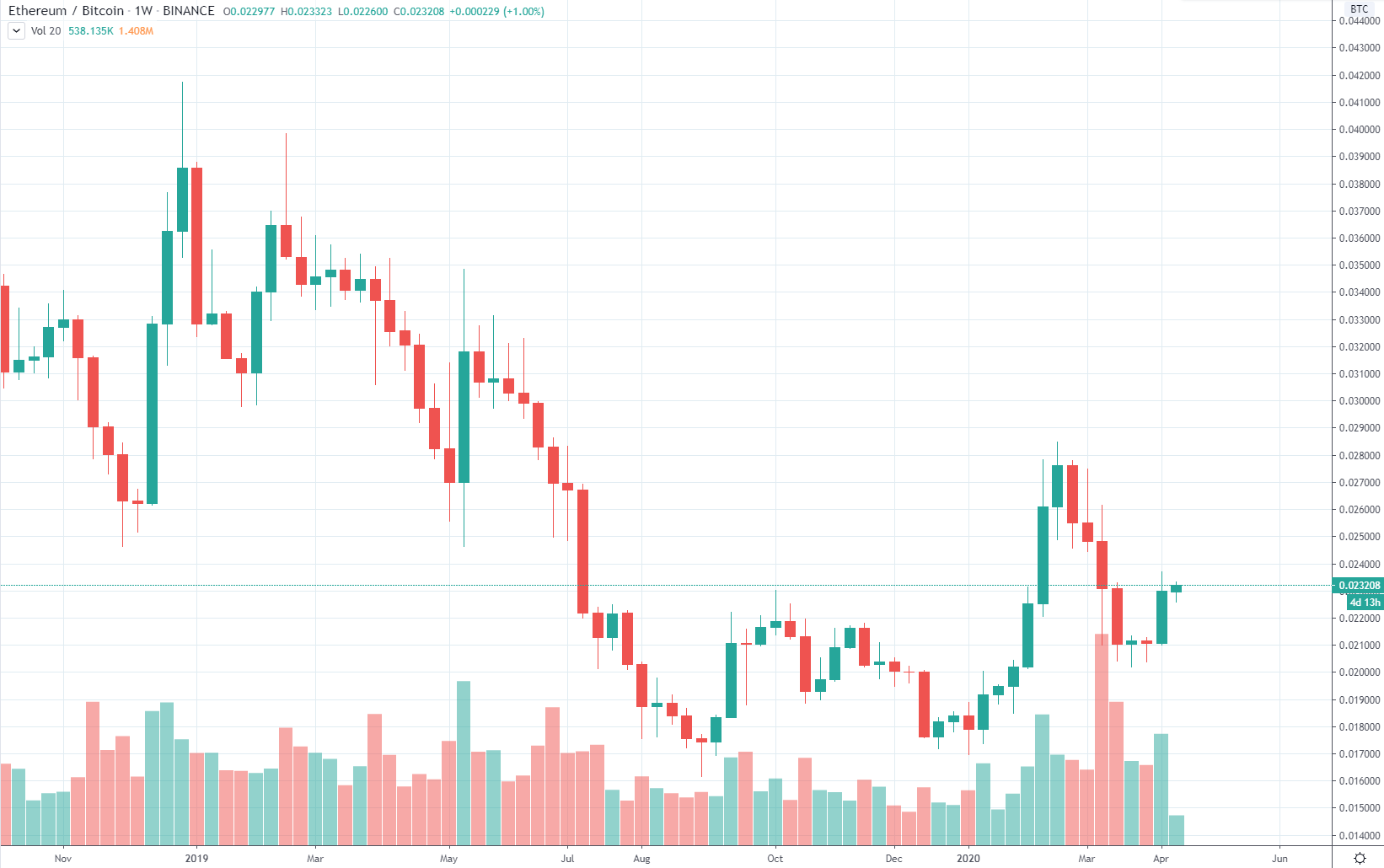 Už letmý pohľad na Dominanciu odhalí, že Bitcoin v posledných rokoch jasne dominuje a trh s altcoinami je v úpadku. Väčšina z nich na nové ATH nemôže ani len pomyslieť a aj kvalitné projekty ako Ethereum, EOS, či Monero, ostávajú na druhej koľaji. Voči Bitcoinu proste klesá všetko… Všetko, okrem BSV!