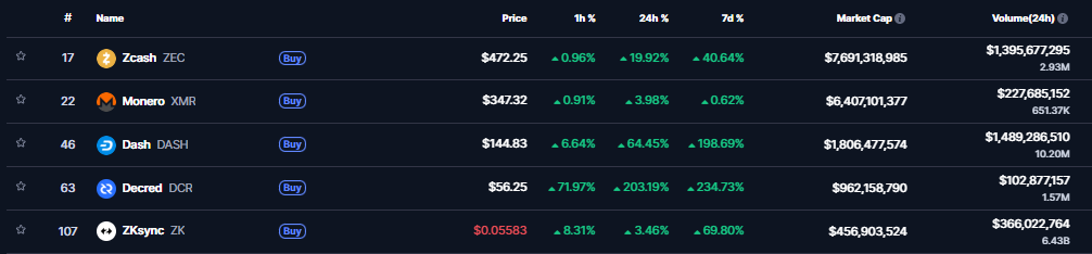 Prudký rast súvisí so zvýšeným záujmom o projekty, ktoré chránia finančné súkromie používateľov, a tiež s celkovým oživením kryptomenového trhu. Investori čoraz viac vnímajú súkromie ako nevyhnutnú súčasť budúcnosti blockchainu. Zcash, ktorý ako jeden z prvých implementoval technológiu nulových znalostí (ZKPs), tak zúročuje roky vývoja.