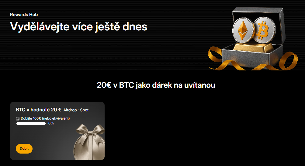 • Noví používatelia získajú BTC v hodnote 20 € pri splnení jednoduchých podmienok do 7 dní.