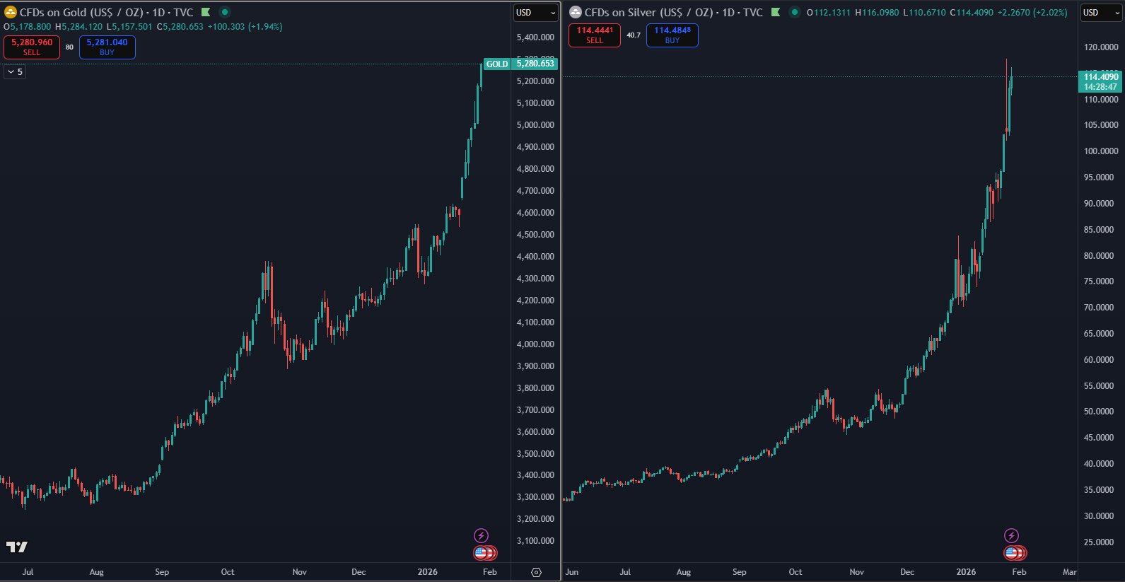 Zlato a striebro v rekordnom raste. Zdroj: tradingview.com